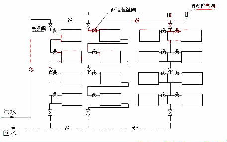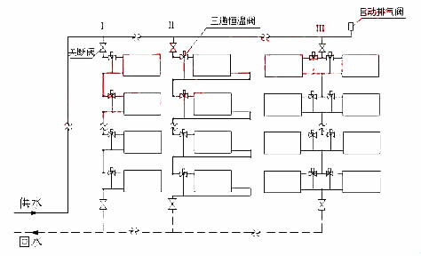 (a) 加跨越管和三通恒溫閥