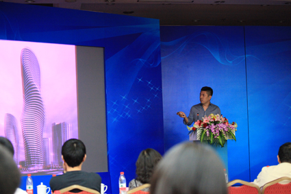 馬巖松因中標加拿大的高層住宅項目“夢露大廈”而聞名,其鮮明的建筑作品風格也受到了國內 外建筑界的廣泛關注。本次報告馬巖松從對魚之生活空間的魚缸設計講起,闡述了自己在建筑設計中對使用者、環境的思考,直至這種理念在典型設計作品中的體現和運用。憑借對現代高層建筑設計的獨特見解,他設計了具有與眾不同曲線的“夢露大廈”,體現出對工業社會建筑追求力量與高效的自我應對策略;天津濱海新區的中鋼大廈中,六邊形形成的結構與表皮一體化表現了實實在在的建筑,同時又不斷變幻著表情;鄂爾多斯博物館和哈爾濱木雕博物館中,其展示空間的趣味變化都考慮了參觀者在其中的活動和體驗;而黃山腳下的住宅或是北京老城邊的美術館則非常細心地關注了建筑所處的既有自然環境和人文環境;報告最后他展開了對未來城市的無限想象。