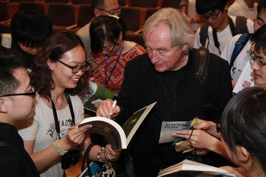 霍爾先生結合自己的經歷講述了他對建筑的理解和感情。出生于美國、又游學歐洲的經歷使得霍爾的設計兼具美國的開放精神與北歐的人文氣質。作為世界最具影響力的建筑師之一,斯蒂文•霍爾先生以利用強烈的環境敏感度融合空間與光、把握每一個項目的獨特氣質來創造概念的設計而聞名。他認為建筑首先與特定的場地相聯系。建筑隨環境與場地的不同而不同。它難以達成,同時又無比地開放、自由。最早期的現代建筑觀念的自由性無限擴展,使建筑超越了新現代主義和后現代主義的邊界,而建筑的最終解決方案則存在于其感性實質中,并改變著我們的生活經驗。