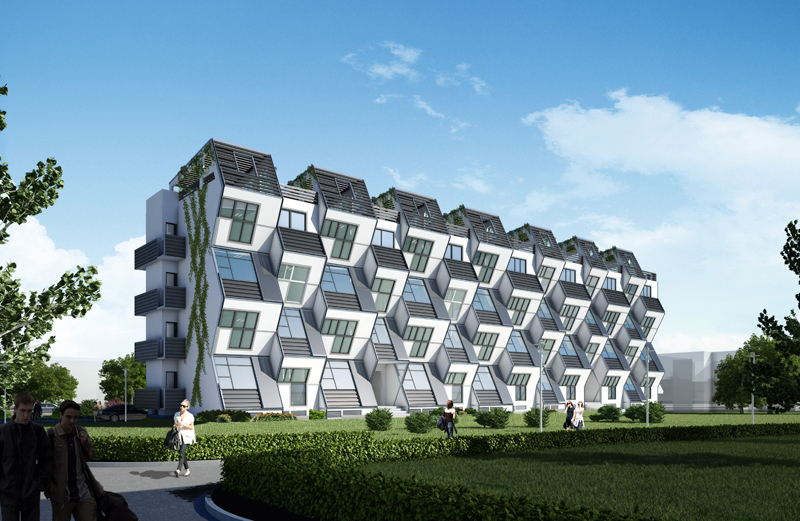 而地處吳江同里湖畔的2011臺達杯國際太陽能建筑設計競賽成果----中達低碳示范住宅項目也充分地考慮了地域特色,吸取了江南傳統建筑的文化精髓,將水鄉建筑文化肌理反映到現代多層建筑中,并提出了垂直村落的概念——上下排布的戶型單元表達遠近的透視關系,波浪形斜墻的運用使每戶都同時獲得了向陽面和遮陽面。通過太陽能等可再生能源的利用,以及底層架空通風系統、屋頂綠化、陽臺自遮陽等諸多低碳技術的應用,讓節能環保、綠色低碳、宜居舒適的綠色建筑成為現實。