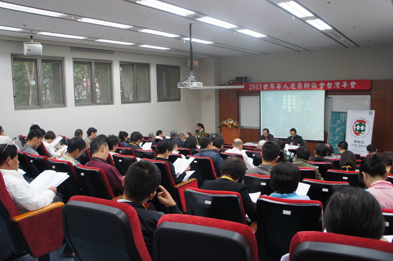 2013年10月25日下午,世界華人建筑師協會(WACA)于臺北市福華國際文教會館201室進行了第三屆第四次常務理事會議。2013年10月25日晚間,于臺北市水源會館進行了歡迎晚宴,由中華全球建筑學人交流協會代表臺灣本地承辦方,熱情歡迎來自五湖四海的華人建筑界同僚。