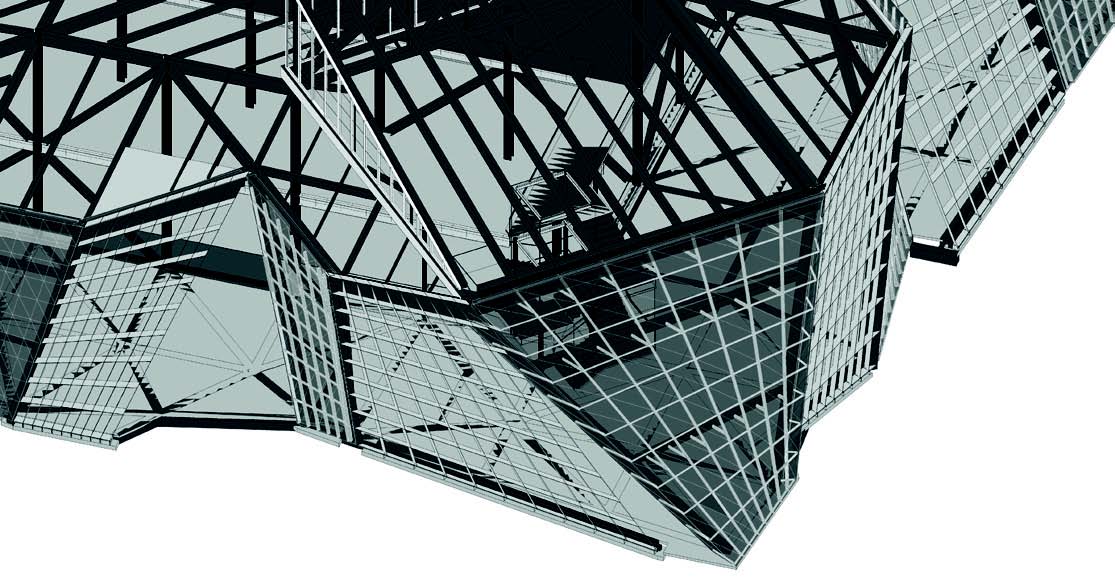 復雜形體的實現首先是設計信息的全面準確表達。利用BIM設計平臺的圖紙表現與信息綜合能力,可以準確高效地進行施工圖階段建筑、結構、幕墻各工種的配合以及項目實施過程中出現的設計問題反饋。同時我們也發現,BIM模型可以進行高效的信息輸出與整合,背后的控制思想與參數化方法有類似之處。如果信息輸入的接口更為開放,將形體生成過程中的設定參數與BIM模型的控制參數對接,實現建模軟件平臺與BIM平臺的整合,參數化設計的能力將更為強大。