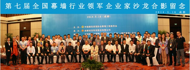 2014年5月16日,第七屆全國幕墻行業領軍企業家沙龍在成都高新豪生大酒店成功召開。本屆沙龍由中國建筑裝飾協會幕墻工程委員會發起并主辦、成都硅寶科技股份有限公司獨家承辦。中國建筑裝飾協會會長李秉仁、中國建筑裝飾協會副秘書長兼幕墻工程委員會秘書長張京躍、四川省建筑裝飾分會會長楊乾芳等應邀出席本會。