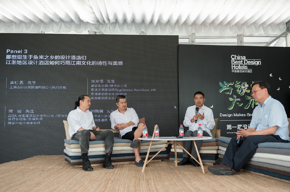 第三個圓桌討論議題“那些誕生于魚米之鄉的設計酒店們”邀請了上海古杉投資管理有限公司執行總裁康紅恩、建筑設計師張光德、GOA資深合伙人及總建筑師何峻、正午設計資深合伙人鐘剛勇,從酒店業主“甲方”的需求和設計師“乙方”的實施進行激烈討論,提出應當摒棄局限于“江南”地區酒店的發展,從宏觀的角度探討了酒店項目在各個設計環節所遇到的實際問題。