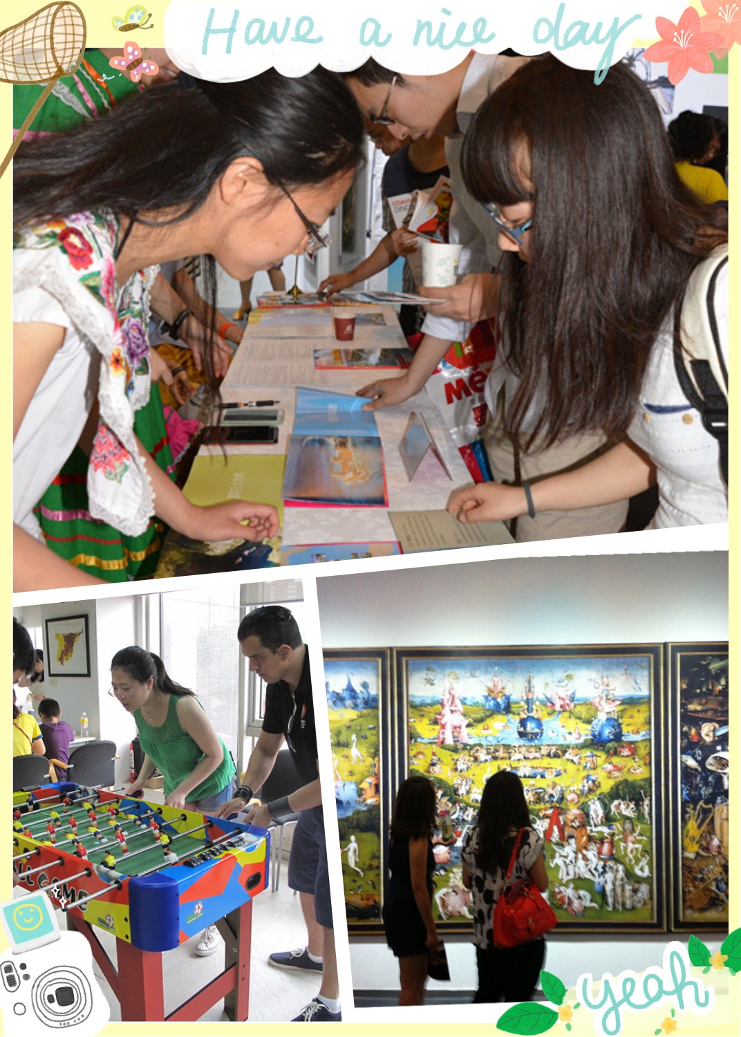 北京塞萬提斯學院為2014 年西班牙語日準備了一系列豐富多彩的活動:從西班牙傳統服裝秀、卡拉OK、音樂會、舞蹈課堂、電影放映,再到故事會、桌上足球比賽和免費西語課堂,都為夏至日增添了一份熱情。下午墨西哥駐華大使館向北京塞萬提斯學院圖書館贈書儀式中,墨西哥大使Julián Ventura 先生感嘆到,塞萬提斯學院是傳播西班牙語文化的“大使館”。同期舉辦的來自中西兩位藝術家的作品《人間樂園》的展覽,吸引了所有人的目光。