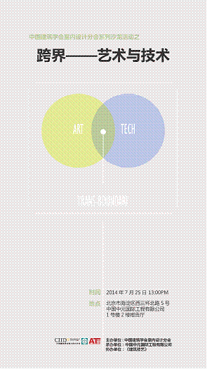 2014年7月25日,CIID2014北京沙龍活動,將在北京市海淀區西三環北路5號中國中元國際工程有限公司1號樓2樓報告廳舉行。此次沙龍活動圍繞《跨界--藝術與技術》的主題而進行,與北京的設計師們一同暢談設計,聚焦“跨界”這一文化現象。此次北京沙龍活動由中國建筑學會室內設計分會(CIID)主辦,中國中元國際工程有限公司承辦,《建筑技藝》雜志協辦。
