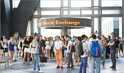 上市大廳最奪人眼球的是它的主色調——中國紅的“紅”、股市長紅的“紅”。紅地毯、紅色的橡膠地板、紅色的大臺階,整個空間設計的非常有儀式感。這里也融入了深交所創意加入的中國元素——企業IPO(上市)成功后,隱匿在紅燈籠中的交易大鐘降落至人的高度,上市公司代表用小錘敲響上市鐘。