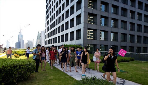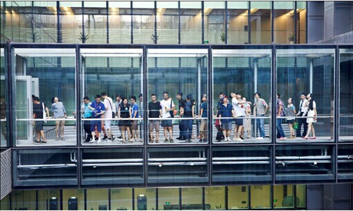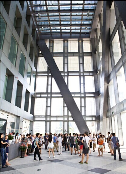 7月5日由OMA建筑設計師何宛余擔當導覽員的“設計與生活”建筑小旅——參觀深圳證券交易所盛況空前,近一百人組成的市民參觀團,通過實地勘察,深入了解了深交所的內部設計和功能安排。這個巨大的“漂浮平臺”既成為承接上部的平臺,同時又釋放了下層的空間,抬升大廈的基座,提高了交易樓層相對于地面的位置,也增加了交易樓層的曝光度,從這個空中平臺上,能向全世界的證券市場發布最新的信息。