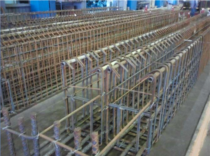 現場參觀了預制構件的鋼筋加工廠、RT-MIX廠、生產區一(結構)、生產區二(樓板)和儲存區。其中,鋼筋加工多螺柱箍筋以及全套生產、組裝等技術是潤泰集團的專利產品,采用全自動機械加工箍筋,有利于工廠流水線生產和工業化制造工藝。參觀了外墻板預制加工過程,包括外墻瓷磚預制粘貼的工藝和外墻板連接防水處理工藝等。