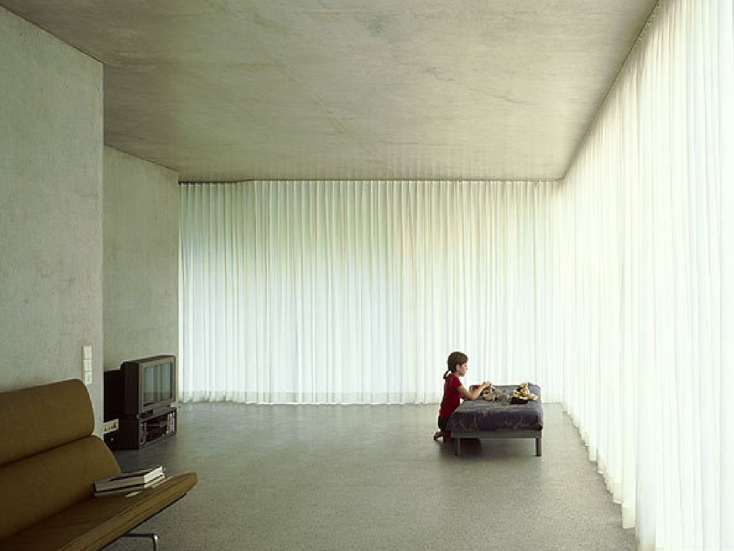 莫內歐通過尺度的對比在建筑中獲得絕佳的效果:在通過入口時,低矮的尺度以及在通往展廳時的封閉天橋給人以壓抑感。進入大廳后,10m高的尺度讓人豁然開朗,給人以神秘感和藝術氣息。