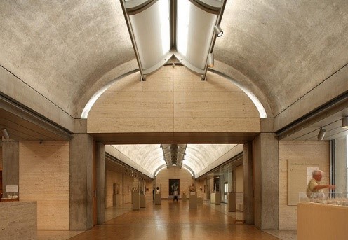 “光是結構的給予者”,康的設計是光、結構類型和空間形式的三位一體。在金貝爾美術館設計中,康對自然光的處理分為頂采光、側采光和庭院采光。