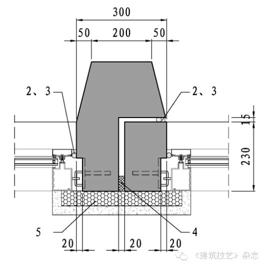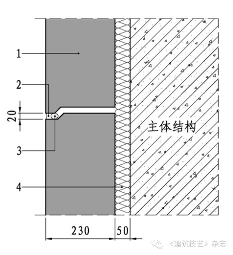 本項目建筑構造設計主要包括防水、防火、保溫等,由于混凝土板厚度為230mm,外掛板自身的防水、防火性能優越,關鍵是做好接縫防水構造、節點防火和層間防火構造,具體做法如下: