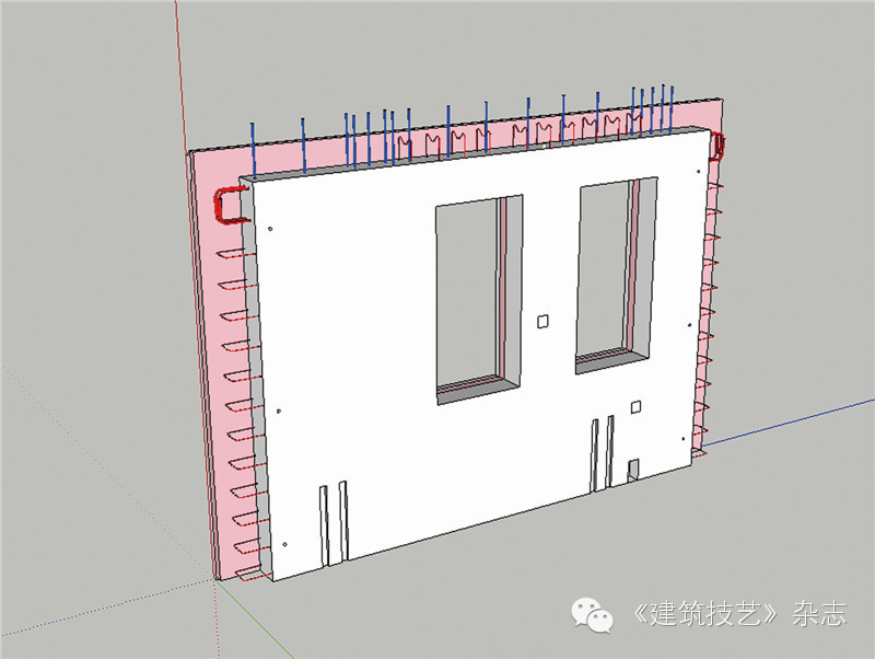 預留、預埋在深化設計階段完成是非常困難的事情,并且檢驗設計圖紙是否準確也是一項重要工作。我們采用三維協同設計,首先建立每塊預制構件的三維模型,然后將所有預制構件組建標準單元或典型樓棟的三維模型,這個過程相當于在虛擬環境下拼裝建筑,用模型檢查建筑構造和構建外形是否正確。