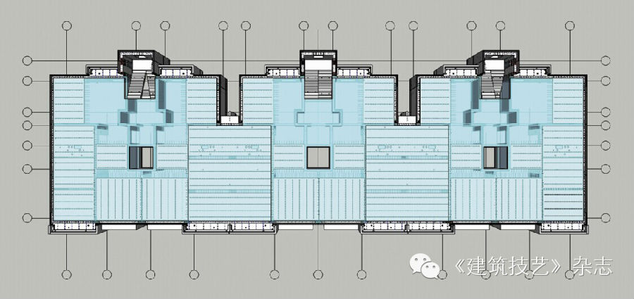 墻面單元整體預制,清水混凝土裝飾效果,拼縫較少,非常適合此項目立面分格方案