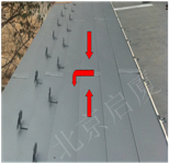 - 橫鋪階梯屋面板為層層扣合固定,屋面板的小肋插在大肋的凹槽里,牢固的吊子用螺釘在內側將屋面板大肋鎖死,依次將所有屋面板固定。整個屋面不但沒有螺釘外露,而且沒有任何穿孔破壞,因此屋面的抗風能力極強,經權威機構的測試,橫鋪階梯屋面板的抗風揭性能高達5KPa。