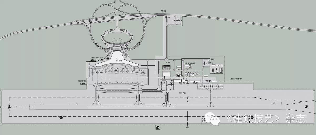 航站樓前的交通組織平臺15000 ㎡。