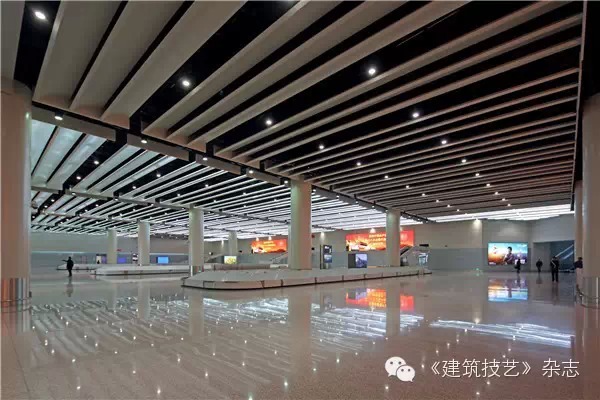 天窗采用了國際先進的雙空腔玻璃節能技術,幕墻為4層玻璃。高效節能,中空加膜節能玻璃,隔熱系數達到0.9.通透率達50%,是目前國內采用這種先進技術最大規模的工程。具有極高的科技含量。