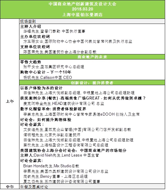 憑借此次機遇,Rudolph E. Milian先生將于3月21日在上海舉辦首屆“可持續發展小組會議”。 Rudolph E. Milian先生是“Retail Green Agenda” 一書的作者,將就購物中心如何才能做到可持續發展與論壇嘉賓進行深入探討。