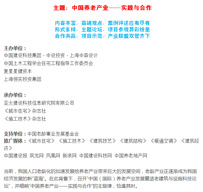 6.26上海:中國(國際)養老產業發展暨適老建筑與設施科技論壇