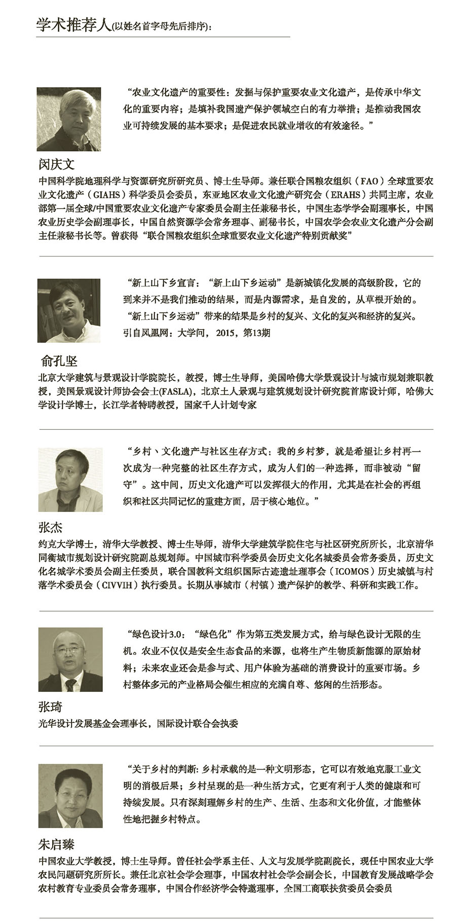 同時,展覽邀請了在學界卓有成就的五位專家作為學術推薦人,分別從不同角度切入展望鄉村設計的可能性。他們(以姓名首字母先后排序)分別寄語鄉村設計展: