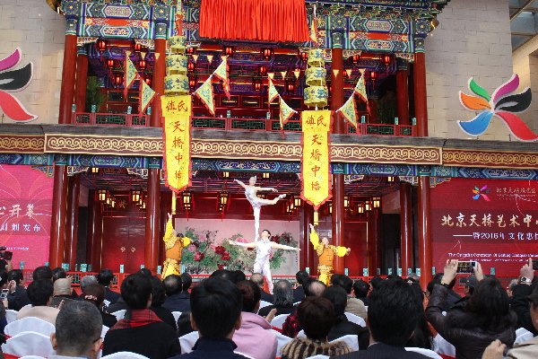 北京天橋藝術中心是繼國家大劇院之后北京第二個大型綜合性劇場群,這意味著北京又添一座文化新地標。天橋藝術中心是一個以音樂劇為主,包含話劇、舞蹈、家庭秀、兒童劇、演唱會、各類現場音樂會等多種演藝形式在內的綜合性劇場群,包含有四個劇場,其中1600座的大劇場是北京首家大型音樂劇專業劇場。