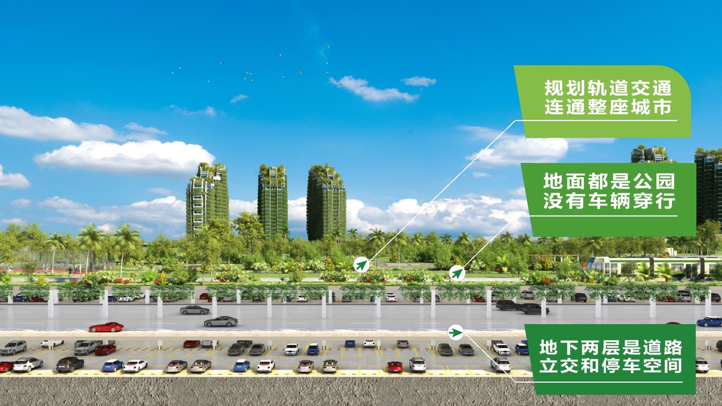 森林城市是碧桂園在馬來西亞打造的一座國際產能合作新城,被譽為“未來城市榜樣”。碧桂園集團董事局主席楊國強在接受專訪時說,森林城市使用垂直綠化,建筑外墻長滿植物,目之所及都是綠色環繞;建造立體交通,地面都是公園,地下為高速路和停車雙重空間,實現人車分流,地上軌道交通,連通整座城市。”這也是另一種多維度生態系統構筑立體城市的嘗試。