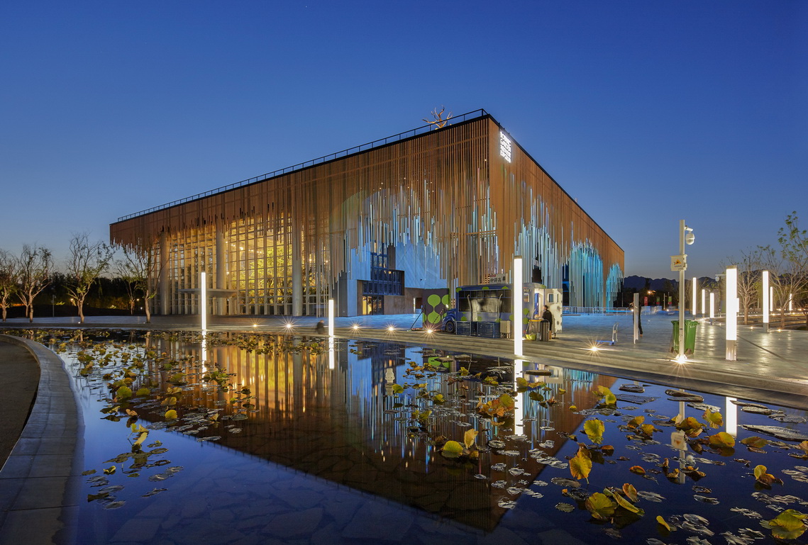 以綠色、生態、環保為原則,植物館的建筑、景觀、照明設計等集合了當代結構技術、材料技術、綠色技術、照明技術、種植技術、控制技術等專業最先進和適用的理念、技術和產品,并充分考慮了會后的可持續利用和經營。圍繞著策展的“智慧”主題,這些智慧設計也回應了2019年北京世園會“綠色生活、美麗家園”這一核心主題。