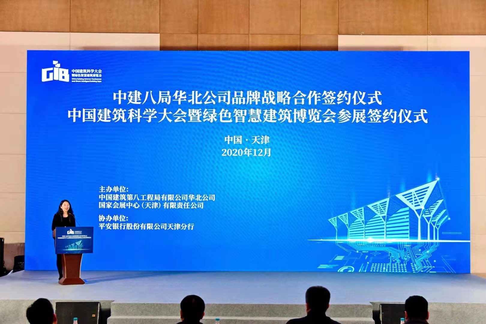 2020年12月20日,由中國建筑第八工程局有限公司華北公司、國家會展中心(天津)有限責任公司主辦,平安銀行股份有限公司天津分行協辦的中建八局華北公司品牌戰略合作簽約儀式、中國建筑科學大會暨綠色智慧建筑博覽會參展簽約儀式在津成功舉辦。